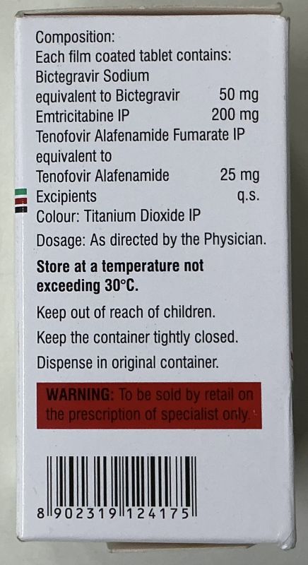 | Composition | Bictegravir Emtricitabine Tenofovir Tablet |